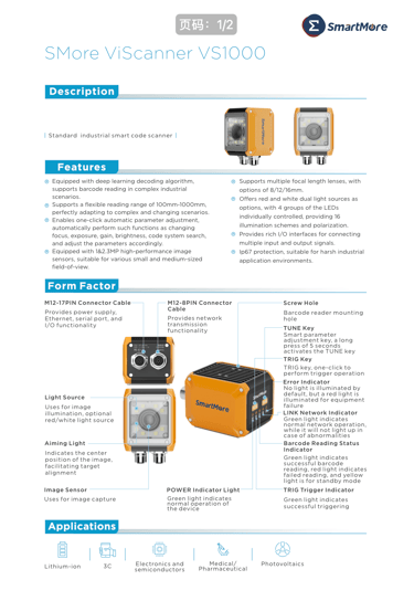 Powered by deep learning algorithm, a high-speed multi-core SMP processor, and a megapixel image sensor, the VS1000 provides excellent reading capabilities for 1D and 2D codes on over 50 materials. Flexible and easy to use, the VS 1000 can adapt to a wide range of conditions, providing accurate, rapid and reliable code reading solutions.