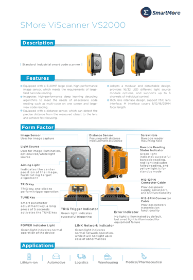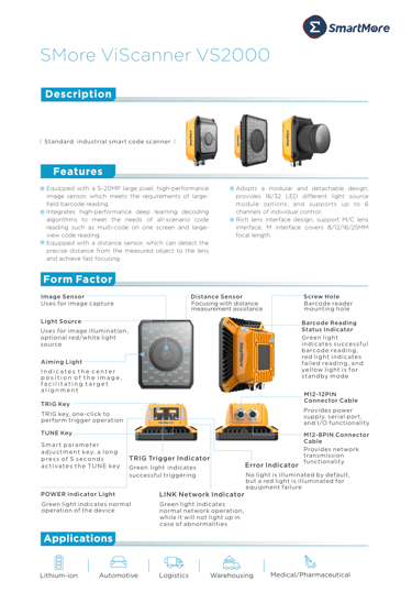 Powered by deep-learning algorithms, VS2000 is able to provide outstanding reading services for both 2D and 3D codes on over 50 materials. Defined as a smart industrial barcode scanner, VS2000 supports deployment in various complicated and severe environments and provides rapid and accurate code-reading solutions.